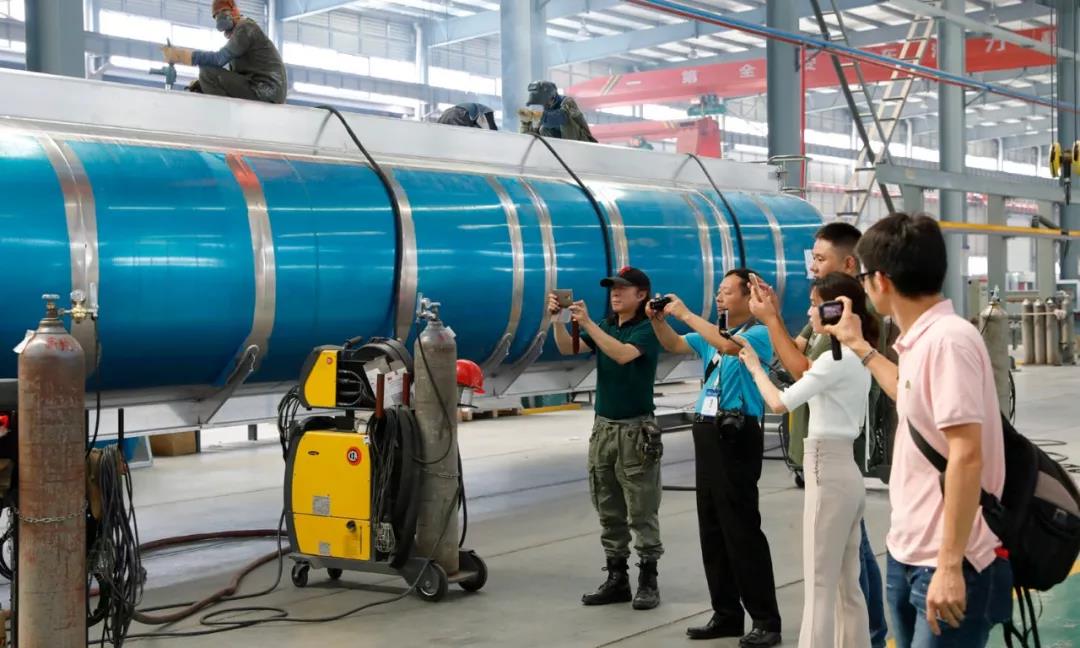 在觀摩采風過程中,網絡名人大咖們被眼前的龐然大物給震驚了,這么大個罐體得裝多少液體? 并且這樣的鋁合金罐子已實現了輕量化,是節能減排的急先鋒,程力人真不簡單,為環保建設及綠色發展做出了自己應有的貢獻。短暫的采風活動就要結束了,讓我們把美好的瞬間定格在鏡頭里,銘記在內心深處吧。