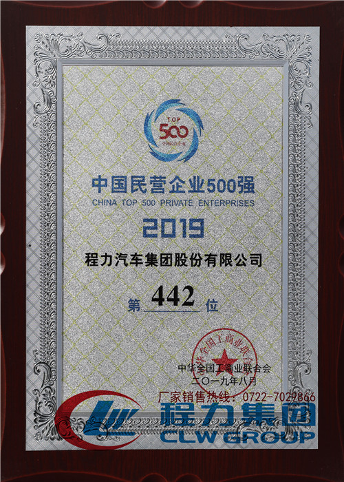 程力汽車集團(tuán)2019年中國民營企業(yè)500強(qiáng)榜上有名比去年穩(wěn)中上升