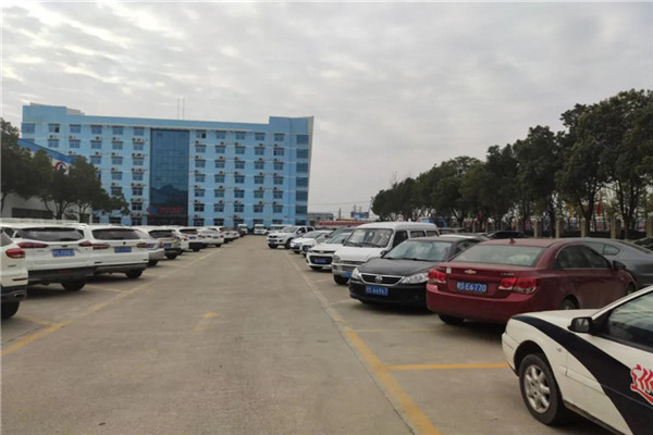 程力銷售大樓廣場前,停滿了復工復產(chǎn)的干部職工上班車輛。