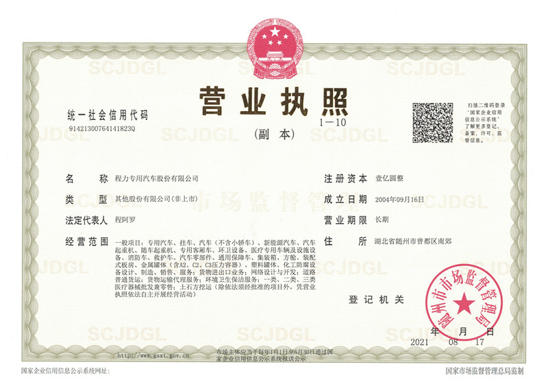 程力最新營業執照,程力專用汽車股份有限公司營業執照,程力新版營業執照,湖北程力汽車營業執照程力汽車官網:m.sutm.cn,程力專汽政府和事業單位專用汽車…