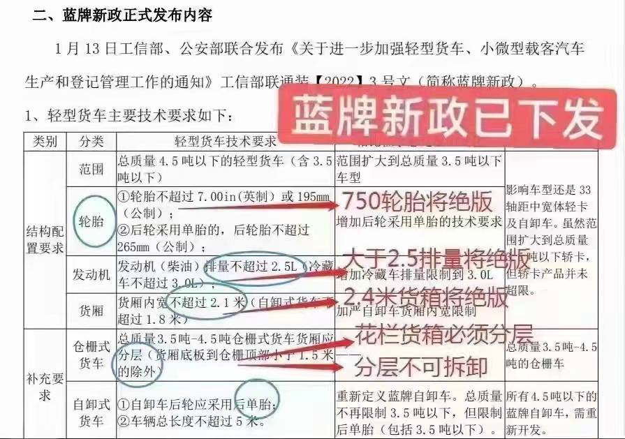 2022年藍牌專用汽車車輛上牌新規定解讀大噸小標不可取。工業和信息化部 公安部關于進一步加強輕型貨車、小微型載客汽車生產和登記管理工作的通知:近年來,輕型貨車“大噸小標”、小微型載客汽車違法載人載貨引發的道路交通事故多發,給人民群眾生命財產安全造成重大損失,成為嚴重道路交通安全隱患。為貫徹落實《全國安全生產專項整治三年行動計劃》和《道路運輸安全專項整治三年行動實施方案》要求,切實加強車輛生產和登記管理,進一步提高輕型貨車、小微型載客汽車安全技術性能,現將有關事項通知如下: