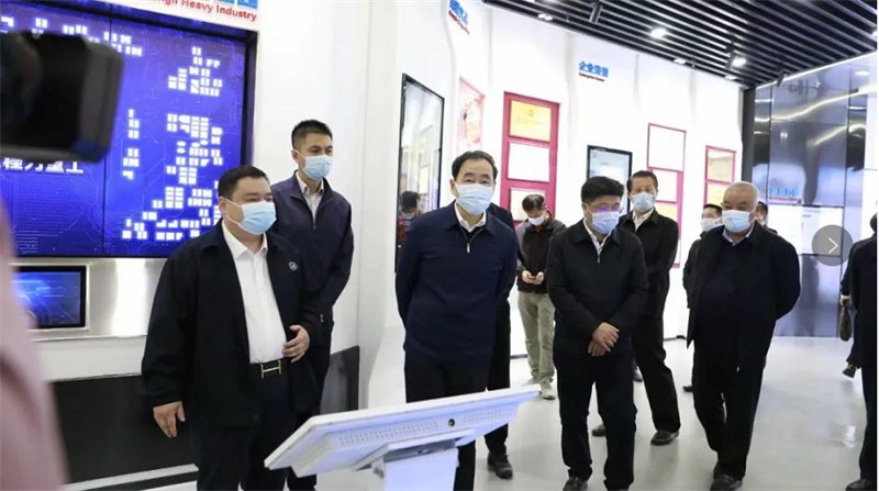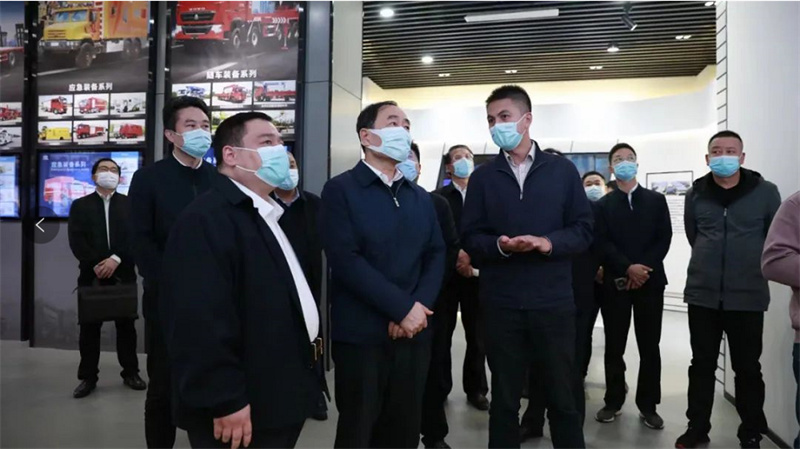 右上圖:湖北省副省長趙海山(左二)、隨州市政府副市長黃繼軍(左三)與程力汽車集團董事長程阿羅(左一)等負責人參觀程力專汽5G數字云展廳。 程力集團高質量發展的重大舉措引起了湖北省領導的高度重視,近日,趙海山副省長一行領導,在隨州市副市長黃繼軍、曾都區區委姜晧,以及隨州市、曾都區政府職能部門負責人的陪同下,赴程力汽車集團進行專題調研,他首先參觀了程力汽車集團5G數字云展廳,對程力集團跨越式發展與對地方經濟建設的貢獻,表示了充分肯定;鼓勵企業以新技術、新材料、新工藝為重要抓手,以研發生產氫燃料動力整車和新能源商用車暨應急裝備產品轉型升級為突破口,一心一意謀發展,堅定不移地走科技創新和綠色環?沙掷m發展之路。