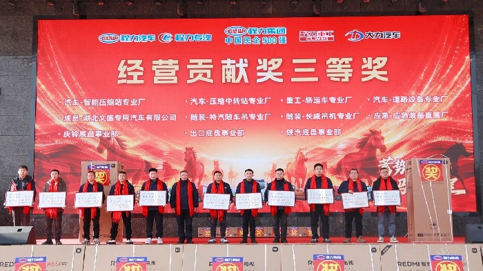 董事局主席程道國先生作總結(jié)講話,程主席回顧了程力發(fā)展征程,寄語全體同仁乘勢而上、策馬揚鞭,以更昂揚斗志深耕主業(yè)、開拓創(chuàng)新,共筑程力發(fā)展新高度。講話期間,二等獎、一等獎抽獎相繼揭曉,米家滾筒洗衣機等大獎花落名家,將氛圍推向頂點。 歲序更新,華章再啟,展望2026年,我們程力人初心如磐,奮楫篤行;馬躍新程,未來可期。本次大會既是總結(jié)表彰的榮耀盛典,更是啟航新局的動員令。全體程力人將以榜樣為力量,以戰(zhàn)略為指引,凝心聚力、勇毅前行,以實干書寫2026新篇章,共赴程力集團更輝煌的未來! 延展鏈接:2025年捷報頻傳碩果累累! 程力汽車集團2025年專汽單項產(chǎn)值首次突破100億元大關(guān),出口創(chuàng)匯1億美金,上繳稅收超過一億元,在中國民企500強排名第320位,綜合實力顯著增強! 同時,程力汽車集團旗下子公司程力專用汽車股份有限公司“程力威”商標品牌價值,被湖北省政府、省發(fā)改委、省經(jīng)信廳認定全國首家專汽品牌價值達12.38億元;“集團還同時擁有“大力”中國馳名商標和“程力”湖北省優(yōu)勢商標等知識產(chǎn)權(quán)無形資產(chǎn),知名品牌覆蓋了汽車整車、底盤、新能源車、汽車零部件等全鏈條關(guān)聯(lián)產(chǎn)業(yè)。 |