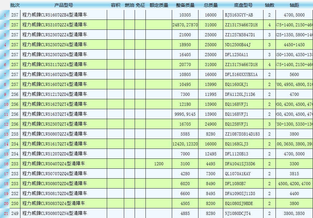 湖北程力國四清障車公告型號有哪些?整理如下:
