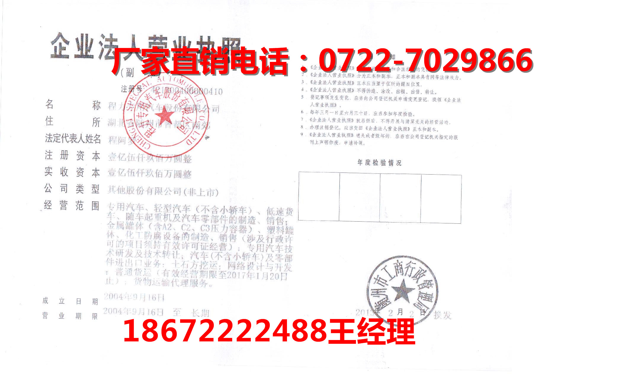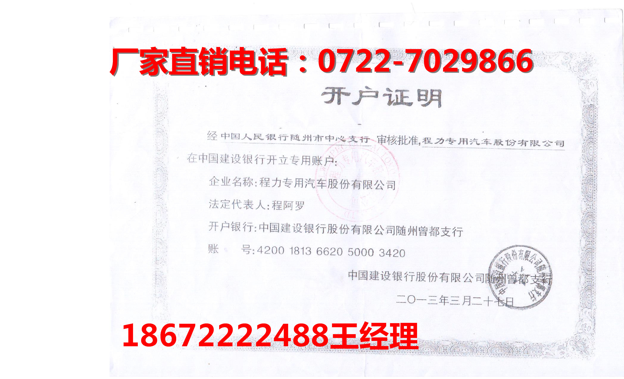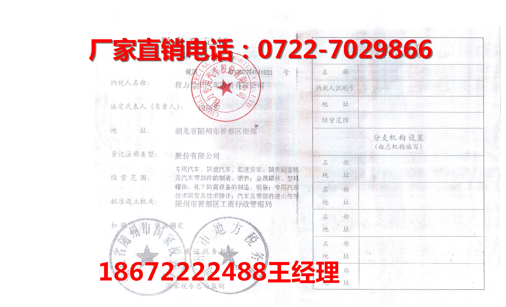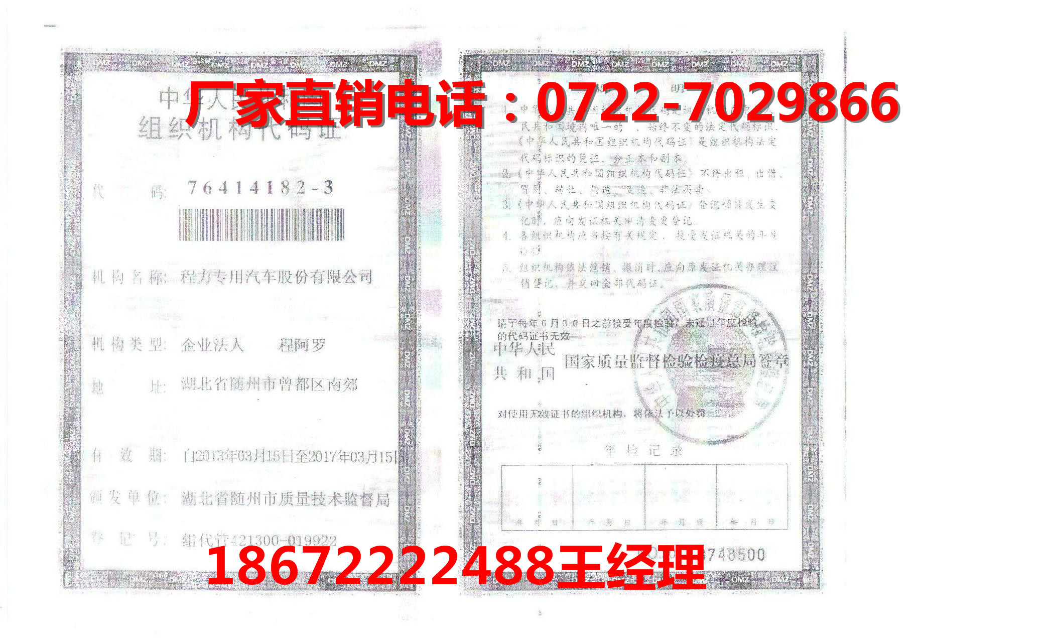 | 2014湖北程力專用汽車股份有限公司企業(yè)資質(zhì)包括:湖北程力組織機(jī)構(gòu)代碼證,湖北程力稅務(wù)登記證,湖北程力企業(yè)營(yíng)業(yè)執(zhí)照, 湖北程力開戶條件,下面圖片可見,由湖北程力專用汽車股份有限公司銷售部友情提供: ![]() ![]() ![]() ![]() 購(gòu)買專用汽車到生產(chǎn)廠家,減少中間環(huán)節(jié),價(jià)格實(shí)惠,買的放心,用的舒心。湖北程力廠家直銷電話:18672222488.辦公電話:0722-7029866. |