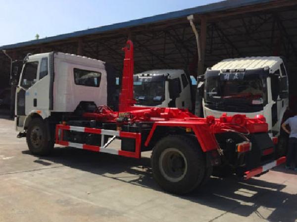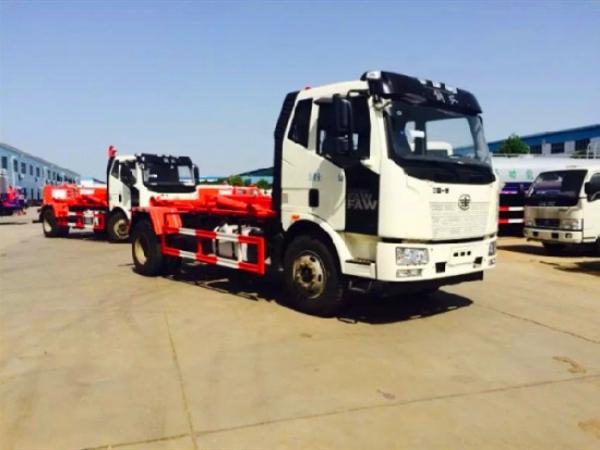 國六解放J6勾臂垃圾車(車廂可卸式垃圾車)底盤配置:采用一汽解放J6底盤,底盤型號為:CA1180P62K1L2A1E6Z,軸距4500,發(fā)動機(jī)配備大柴CA4DK1-22E6型國六柴油發(fā)動機(jī),功率165kw,220匹馬力,8檔變速箱,378后橋,10.00R20鋼絲胎,原廠自動空調(diào),原廠ABS,大燈調(diào)節(jié)系統(tǒng),剎車間隙自動調(diào)整臂,防飛濺裝置,及轉(zhuǎn)向爆鳴器;,陜齒8檔變速箱,378后橋,9.00R20鋼絲胎,原廠自動空調(diào),原廠ABS,大燈調(diào)節(jié)系統(tǒng),剎車間隙自動調(diào)整臂,防飛濺裝置,及轉(zhuǎn)向爆鳴器。 國六解放J6勾臂垃圾車(車廂可卸式垃圾車)上裝配置:解放J6,10-14方方勾臂式垃圾車,標(biāo)配可配合10-15方垃圾箱使用,也可配合同級別移動壓縮式垃圾箱使用,勾臂采用高強(qiáng)度優(yōu)質(zhì)錳鋼,雙層套臂,瀘州液壓油缸,副車架采用16號低合金槽鋼、20號方管與8mm、5mm、4mm、16Mn鋼板焊接而成,翻轉(zhuǎn)架與活動勾臂垃圾車動作設(shè)計合理可靠,帶有滾筒后支腿,實現(xiàn)拉箱、鎖緊、放箱和自卸操作簡單方便,控制方式為駕駛室智能控制,也可根據(jù)用戶需要選裝駕駛室外傳統(tǒng)操作桿進(jìn)行控制。