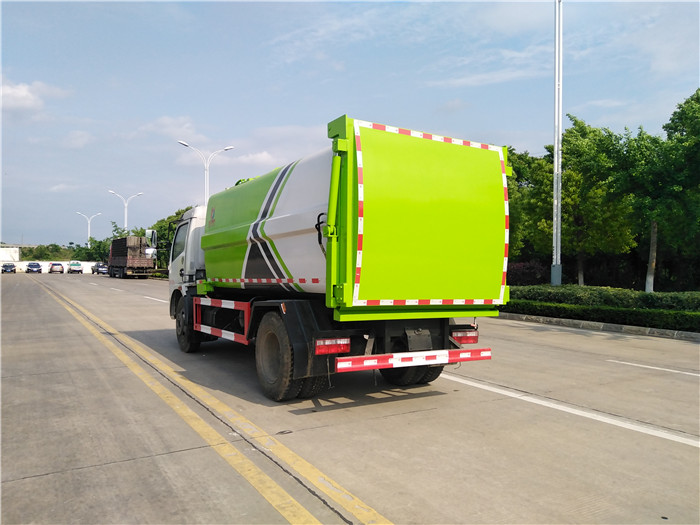 自裝卸式垃圾車優點: 1,壓縮式垃圾車的換代產品; 2,容積大7.立方,3360軸距壓縮車裝載量240升垃圾桶120桶左右. 3,自重輕,燃油經濟性高, 4,故障率低,售后率低,壓縮垃圾車液壓系統復雜,該車型液壓系統簡單,并配置高壓過濾器,保護液壓系統,只有提升機油缸,推板油缸,后面舉升油缸。 5,該車型配置液壓反向鎖死機構,并使用硅膠密封條,可杜絕箱內壓縮垃圾時,后門開縫漏污水,越壓縮后門鎖死越緊,后門采用壓縮垃圾站式加強型后門,抗擠壓抗變形。 湖北程力國六東風大福瑞卡(多利卡)側裝掛桶自裝卸式垃圾車程力威牌CLW5122ZZZ6SL型自裝卸式垃圾車圖片: |
