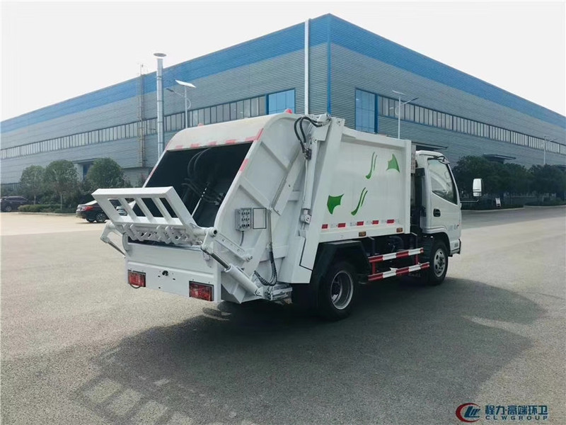 國六凱馬壓縮垃圾車與國五凱馬壓縮垃圾車區別:【藍牌4立方垃圾車,凱馬環衛垃圾車,4方后裝壓縮垃圾車配置說明】 ¤【底盤】:凱馬藍牌4立方壓縮垃圾車采用新款五十鈴級車身,軸距2800mm,云內102馬力國五發動機(D19TCIE1有環保),5檔變速箱,3.5噸后橋,6.50-16輪胎,氣剎,方向助力,ABS,原廠空調。 專用】:廂體材料為優質炭鋼,厚度為邊三底四,廂體容積為4立方米左右。由裝料機構、壓縮機構、卸料機構、油泵、油箱、控制閥等組成的液壓機構組成。裝料機構由支架、連桿機構、凸輪、掛鉤等組成,在油缸作用下,將垃圾桶內的垃圾自動翻轉倒入料斗內。 后翻轉機構選裝:1、掛塑料桶式翻轉機構;2、掛鐵桶式翻轉機構;3、擺臂式翻轉機構; 4、簸箕斗式翻轉機構。