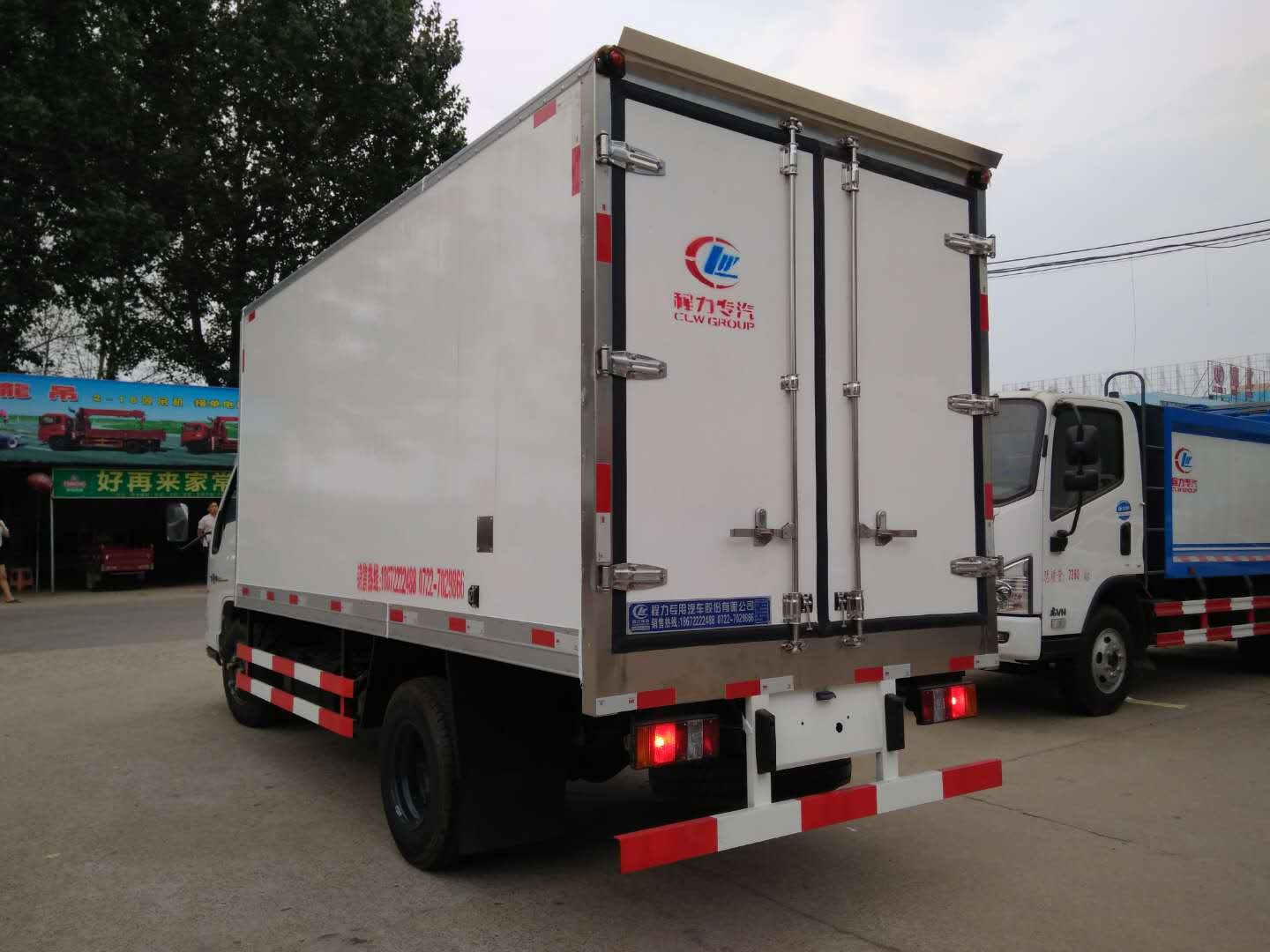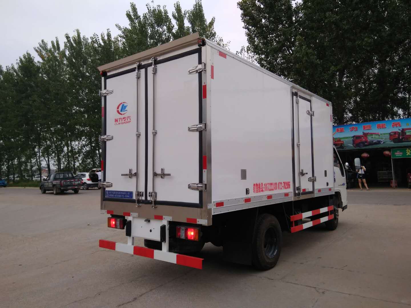 3.上裝配置:冷藏廂內部有效尺寸:長4.15米×寬1.75米×高1.75米,廂體蒙皮采用內外玻璃鋼,隨客戶選擇內置槽鋼焊接骨架或者玻璃纖維超輕高強度骨架,填充8cm聚氨酯保溫層,不銹鋼包角,不銹鋼門框,不銹鋼門鎖件,配后雙開門,選裝側門,防滑花紋鋁底板,-5或者-18度制冷機組可選。可以改裝成藥品冷藏車或者安裝導軌,肉鉤,通風槽等內部設施改裝成肉掛車。
