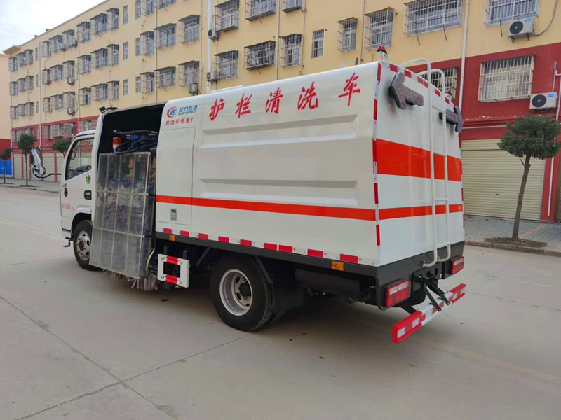 湖北程力國六東風(fēng)多利卡城市護(hù)欄清洗車主要組成部分 電 氣 系 統(tǒng) | 組 成 | 由底盤車電路和副發(fā)動(dòng)機(jī)電氣部分及專用工作裝置操作控制電路組成。 | 底盤車系統(tǒng)電壓 | 12 V | 工作裝置系統(tǒng)電壓 | 12 V | 清 洗 裝 置 | 型式 | 在正副駕駛室后車架一側(cè)對(duì)稱布置4個(gè)清洗刷,由液壓馬達(dá)驅(qū)動(dòng),刷子升出后內(nèi)外可液壓自動(dòng)調(diào)節(jié)。 | 清洗刷直徑 | cm | φ50 | 清洗刷馬達(dá)轉(zhuǎn)速 | r/min | 300 | 單個(gè)清洗刷數(shù)量 | 55 | 清洗高度cm | 140-160 | 清洗原理 | 采用兩沖、四刷的清洗工藝,兩面同時(shí)清洗,使清洗更加徹底。清洗過程:首先刷輥前面的兩排噴水管噴出水將護(hù)欄充分預(yù)濕,車體前移的過程中,中間的兩排刷輥對(duì)護(hù)欄依次進(jìn)行刷洗,最后由刷輥后面的兩排噴水管噴出水將殘留的灰塵沖去 |