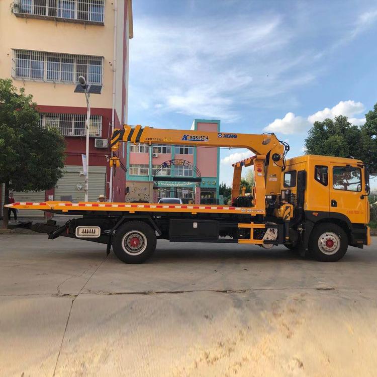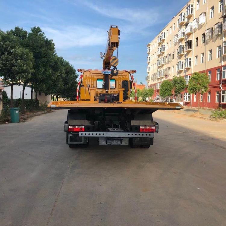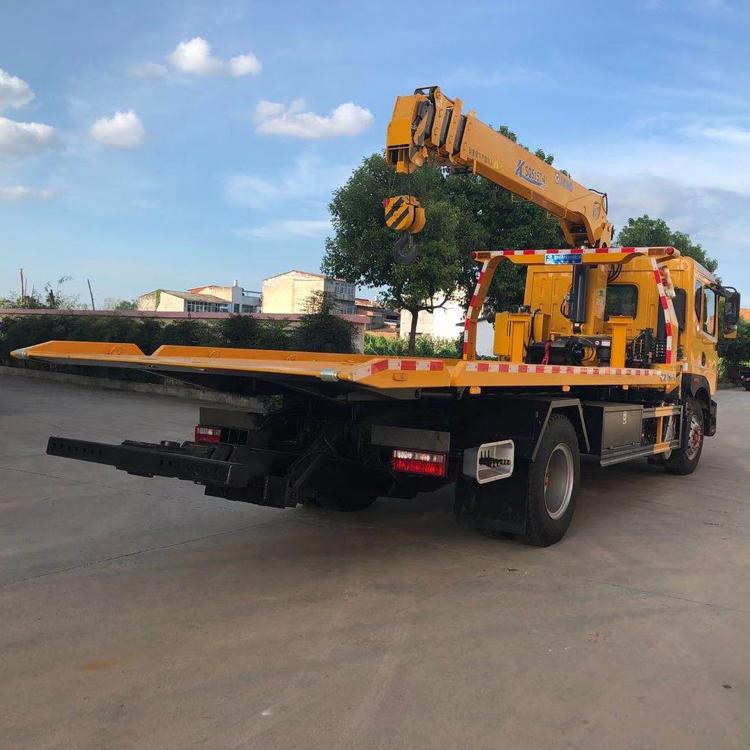 湖北程力國六東風D9帶吊清障車程力威牌CLW5180TQZE6型清障車配置: 東風D9帶吊一拖二清障車拖車 底盤配置:康機210馬力發動機,軸距5300mm,法士特小8檔變速箱,前橋6噸,后橋10噸,295/80R22.5輪胎,250mm雙層大梁。斷氣剎,ABS。 上裝配置:6噸上裝,6噸卷揚,25米鋼絲繩,6噸拖臂,進口閥,可選裝8噸上裝,8噸卷揚,平板為6mm花紋板,可做液壓翻板,配警燈喊話器一套,輔助小車一套,L型拖叉一對,旋轉筒一對,可配6.3噸及以下吊機。 湖北程力國六東風D9帶吊清障車程力威牌CLW5180TQZE6型清障車多方位圖片: