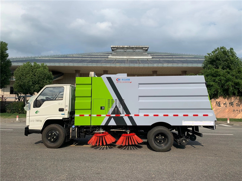 湖北程力國六江鈴掃路車配置: 底盤配置:軸距3360mm,江鈴115馬力,6檔變速箱,7.00鋼絲胎,ABS,電動門窗,中控鎖,遙控鑰匙。 上裝配置:水箱容積1.5m3,垃圾箱容積4m3,江鈴64KW增壓副發動機國三副發,中置4掃盤,三洋擺線馬達,施耐德控制開關,海普瑞斯電磁閥組,廈門南超分離式離合器,免維護離心風機,不銹鋼垃圾箱,垃圾箱舉升自卸,尾部LED箭頭燈,上海新西山電子水泵。清掃寬度2.8m,吸入力度120mm。