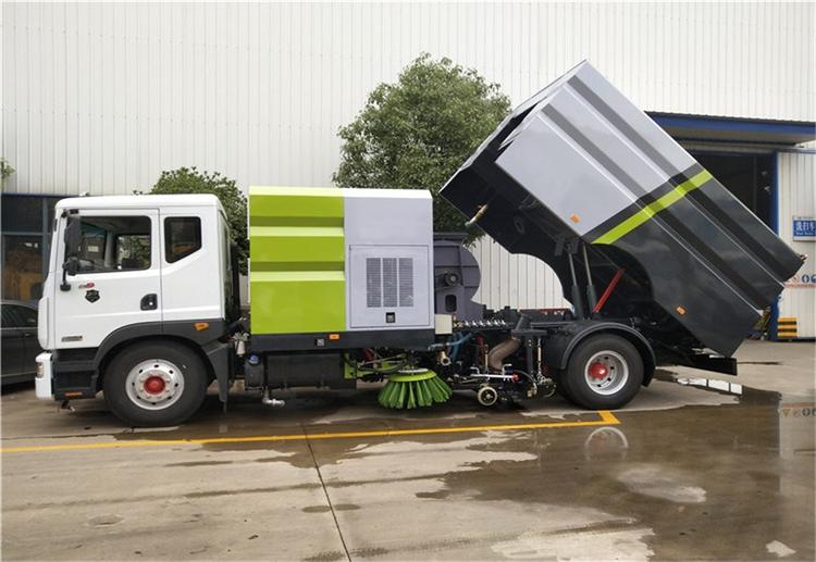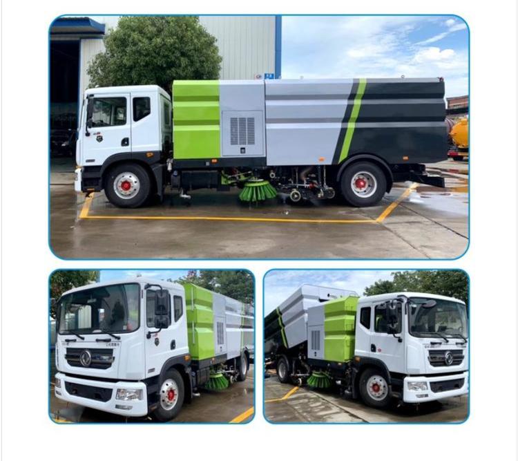 湖北程力東風(fēng)D9洗掃車(國(guó)六) 底盤配置: 采用東風(fēng)D9系列新款駕駛室,3950mm軸距,搭載國(guó)六(國(guó)VI)玉柴200馬力柴油發(fā)動(dòng)機(jī)/康明斯210匹馬力柴油發(fā)動(dòng)機(jī),6檔變速箱,9T后橋,295真空胎,方向助力、斷氣剎、電動(dòng)窗、中控鎖、ABS,原裝空調(diào),GB7258新規(guī)。 湖北程力東風(fēng)D9洗掃車(國(guó)六)上裝配置: 帶2個(gè)中置掃盤;中置超寬吸嘴;雙層吸塵筒; 康明斯170馬力副發(fā)動(dòng)機(jī);臺(tái)灣液壓閥;大力馬達(dá);德國(guó)高壓水泵 (前沖/側(cè)噴/中噴/后噴霧)/側(cè)沖洗水槍/垃圾箱自潔裝置); 萬向高壓路沿清洗;威龍低壓泵(前沖),氣動(dòng)球閥控制; 4mm不銹鋼垃圾箱;不銹鋼水箱;德國(guó)控制器;尾部箭頭燈; 機(jī)油、垃圾箱、水箱均帶防溢或低位報(bào)警裝置;倒車及洗掃狀態(tài)室內(nèi)監(jiān)視器; 多種語音提示;倒車自動(dòng)保護(hù)、防傾倒垃圾翻車保護(hù)、檢修安全保護(hù); 20m高壓沖洗卷盤;刷臂轉(zhuǎn)動(dòng)機(jī)構(gòu)使用德國(guó)進(jìn)口高新耐磨工程隔套,免打黃油; 冷彎無縫液壓油管;運(yùn)動(dòng)控制器一鍵電腦控制。洗掃寬度3.5m;吸入粒度p110mm。 湖北程力東風(fēng)D9洗掃車(國(guó)六)多方位圖片: