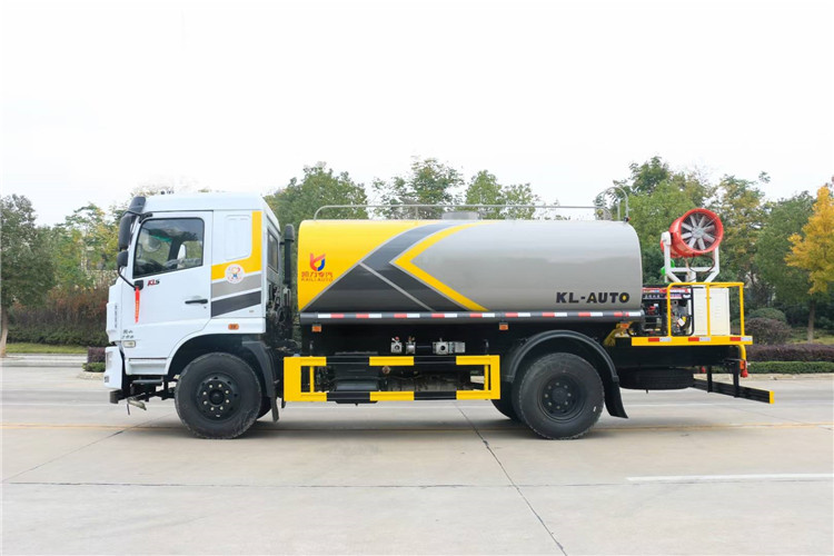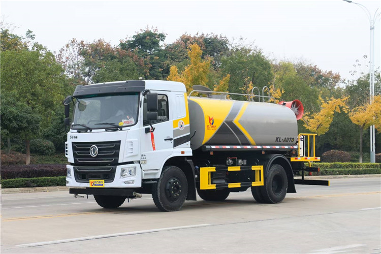 國六東風華神F5綠化噴灑車(12方帶霧炮灑水車)國六東風華神F5 灑水車基本配置, 軸距3950 mm, 玉柴165 馬力國六柴油發(fā)動機,陜齒小八檔(帶高低速),9.00R20輪胎,2.8T前橋,7.8T后橋,原裝空調,氣囊座椅,鑰匙,電動玻璃。采用大流量水泵60-90,基本灑水功能前沖、后灑、側噴、工作平臺帶高炮(可調節(jié)成霧狀、直柱狀)、可泵進泵出、罐體兩側炮筒、帶兩根抽水軟管,上裝標配,罐體自動焊,大梁不動焊